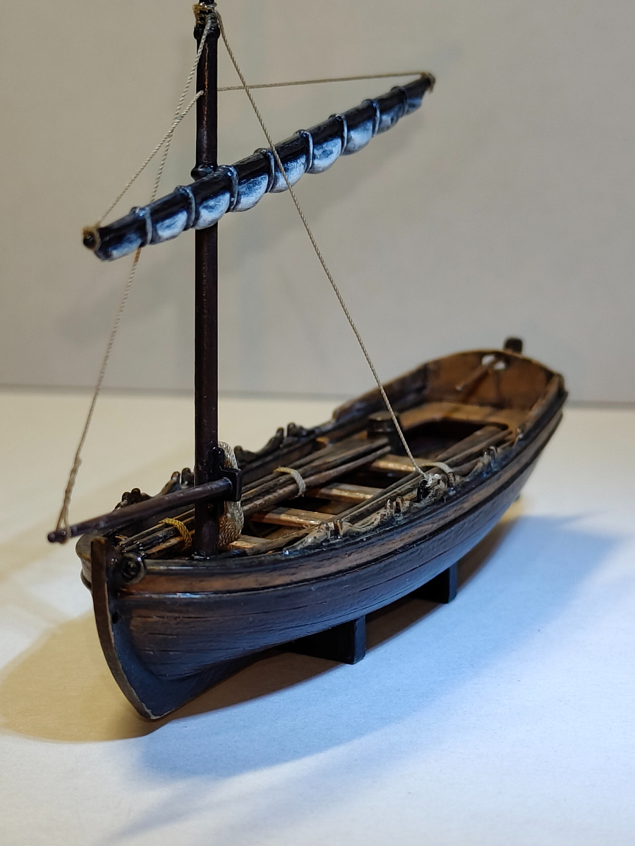 Пролог Средневековая шлюпка от "Звезда", масштаб 1/72 Моя первая модель: Средневековая шлюпка от фирмы "Звезда" в масштабе 1/72 Сам процесс сборки не снят. Но несколько промежуточных фото есть После нескольких экспериментов с покраской получил вот такой результат: Больше фотографий по [Для просмотра данной ссылки нужно зарегистрироваться] Уже после сборки модели обнаружил ошибку. Собирал по инструкции из коробки, в которой рекомендуется устанавливать мачту после полной сборки корпуса лодки. Но если сделать так, то мачту установить правильно не получится - она не достанет основанием до посадочного места и будет выше, чем задумывалось изначально, что в итоге у меня и получилось. Правильнее было бы установить мачту, и уже на установленную мачту надеть верхнюю деталь со скамейками. Следующий мой промах: недостаточно разбавил матовый лак, из-за чего на модели появились еле заметные молочные пятна. В принципе, их не видно, но макросъемка это зло ![]() При покраске пытался максимально изобразить дерево, потрепанное морскими ветрами и водой. На ваш взгляд, у меня получилось? Оценив результаты работы, остался доволен собой и приступил к сборке средневекового английского корабля "Томас" от той же "Звезда" в том же масштабе 1/72. В следующих статьях поделюсь этапами сборки и результатом. Спасибо за внимание, с уважением, Dolphin. |